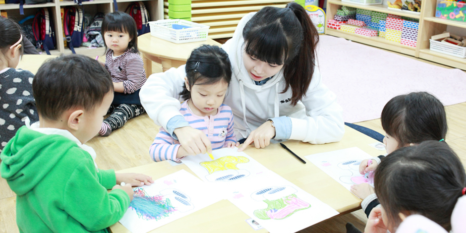 기본 생활습관에 중점을 두고 어휘, 그리기, 표현 등의 대근육 발달과 특히, 놀이교육을 통한 긍정적인 자아 개념 형성 및 또래 집단과의 상호작용능력을 증진시키며, 전인교육을 추구합니다. |