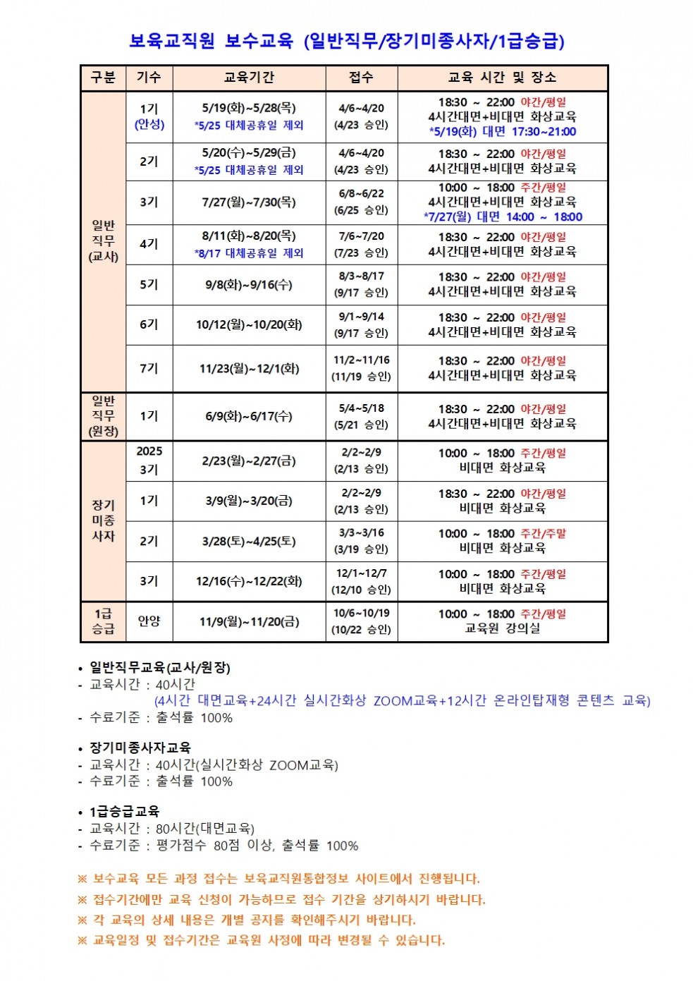 * 각 교육의 상세 내용은 추후 모집시 공지 예정이오니 참고 부탁드립니다.